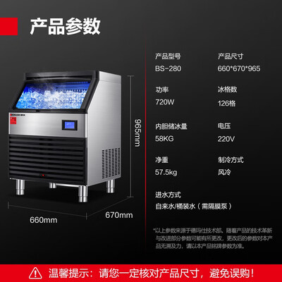 首先,让我们直击要害:这款机器拥有126个大冰格,储冰量高达58公斤,这意味着即使在最繁忙的时段,也能保证充足的冰块供应。想象一下,当你的竞争对手还在为缺冰发愁时,你已经能轻松满足每一位顾客的需求,这是多么大的优势!