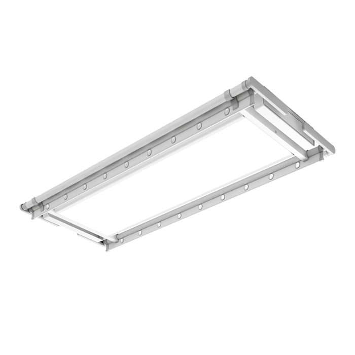 您瞧,这晾衣架升降自如,轻轻一按,就能降到您心仪的高度,再也不用担心晾衣时腰酸背痛了。而且,它的顶灯20W柔光LED,晚上晾衣也亮堂堂的,连阳台灯都省了,节能又环保。
